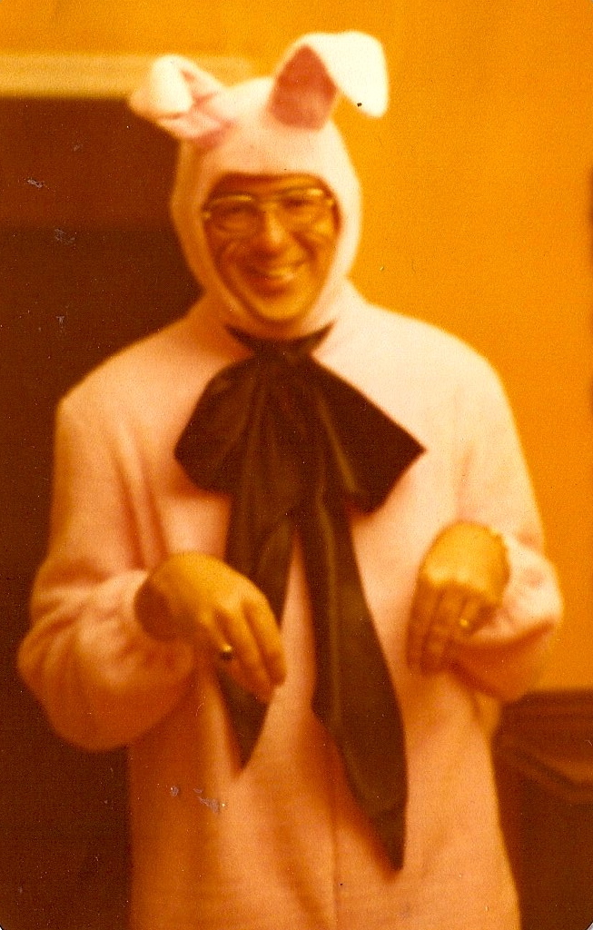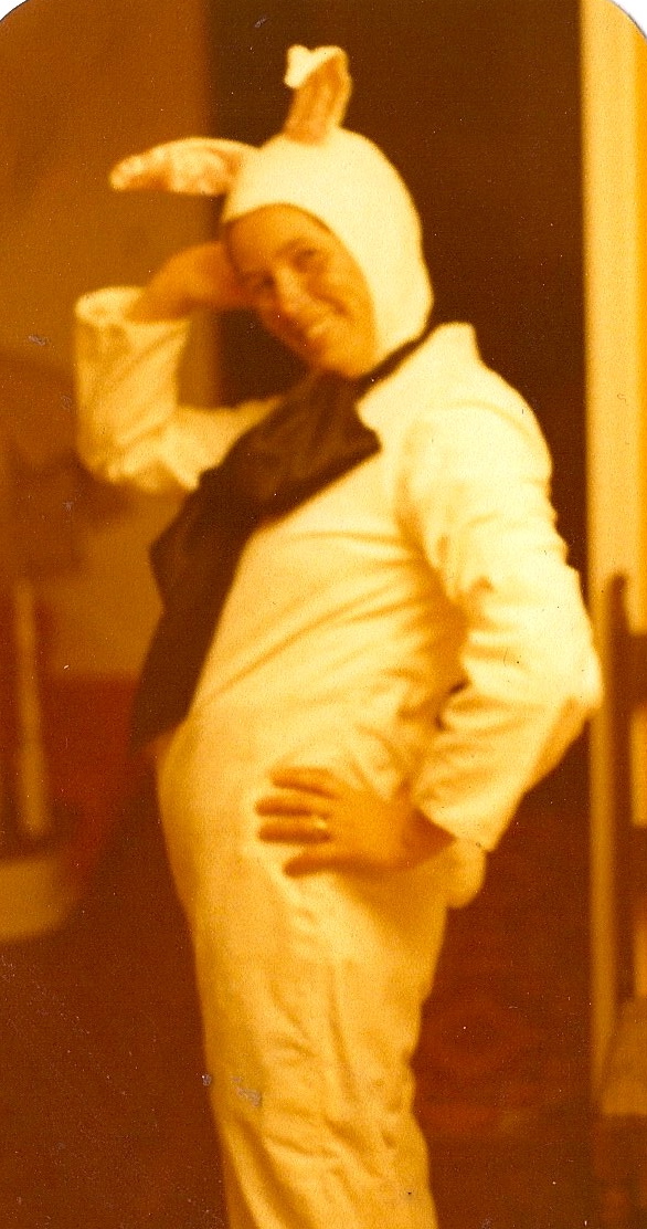 My post-war generation threw Halloween parties for adults and kids alike. There weren’t too many, but, right after having our fourth child, we dressed as rabbits to laugh at ourselves in an age when birth control and zero population growth were the ideas of the moment. We didn’t plan to have four children, but there we were…my 6’4″ husband was a cute pink bunny and I was the prolific mommy bunny.