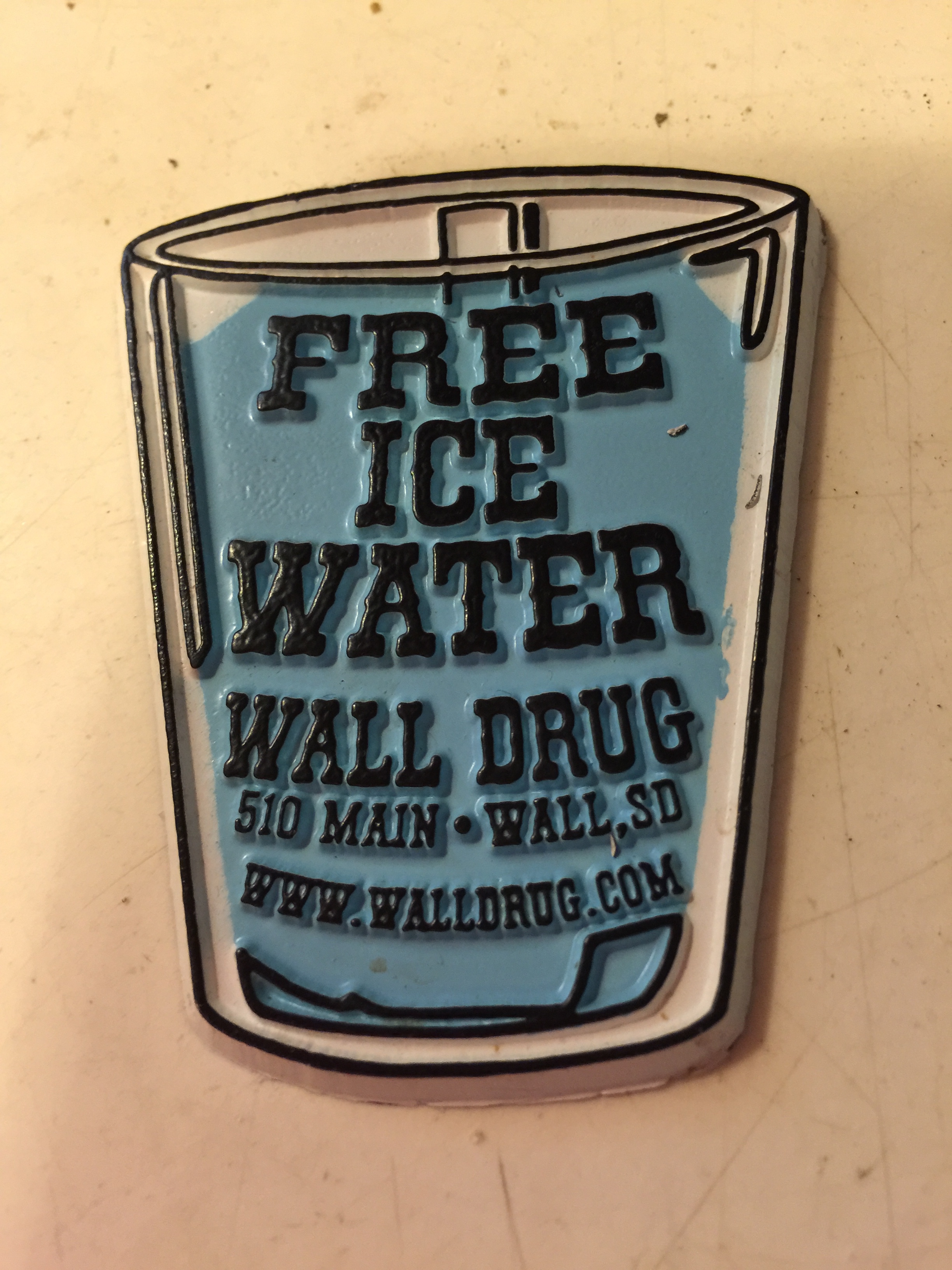 When I went through South Dakota several years ago, I visited the famed Wall Drug, an American story if there ever was one. When Ted and Dorothy Hustead purchased Wall Drug in 1931, they thought they had found a place to use his pharmacy degree and build their own business. They plugged along until 1936 when Dorothy had the great idea of putting out signs offering free ice water for the weary travelers on the nearby highway. Now it’s a legend with Wall Drug signs across the country. Such was the appeal of a glass of iced water. I keep this magnet on my refrigerator to remind me of how an idea can take off – and the value of a cold drink on a hot day.