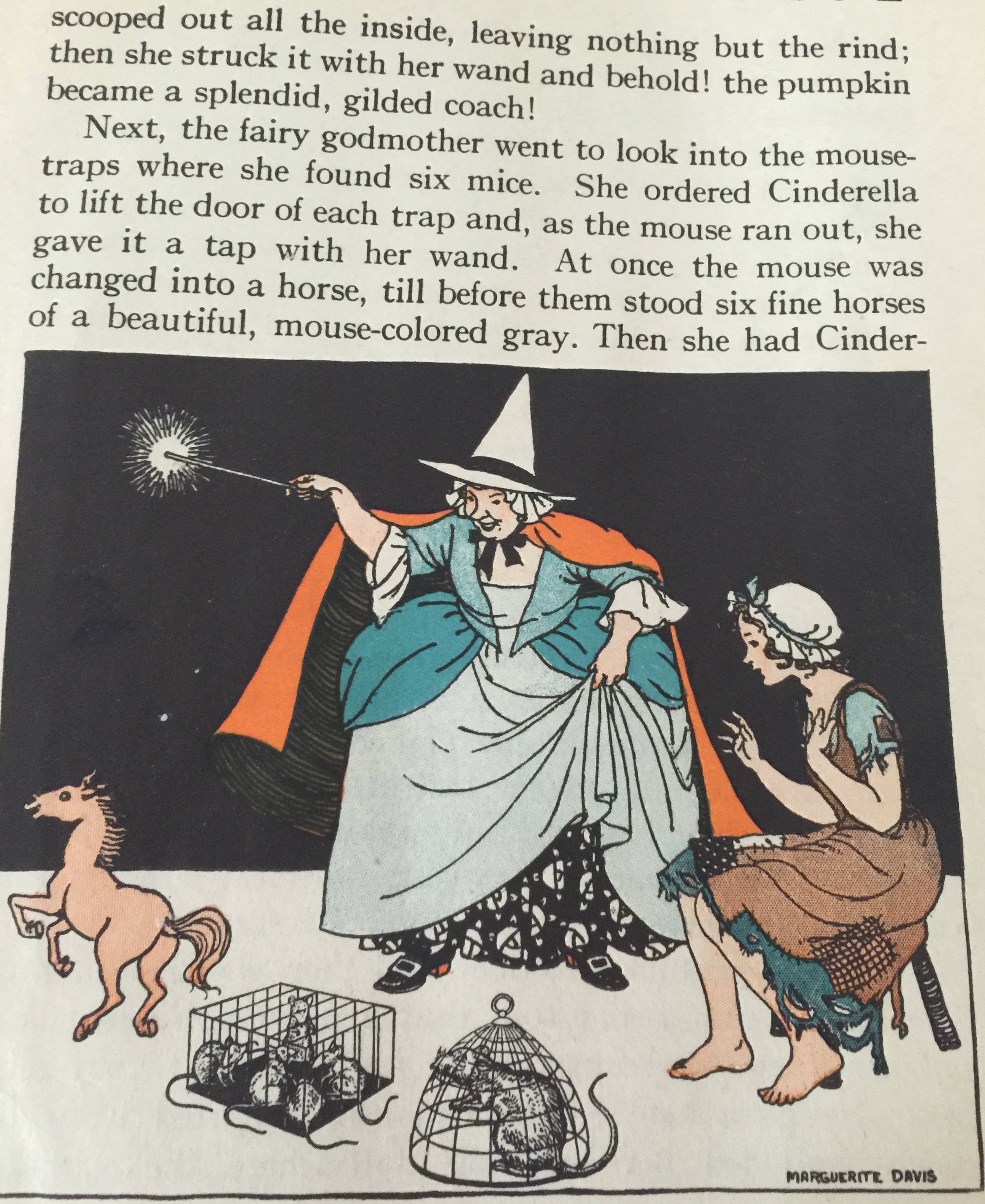 We had a set of books called My Book House at home. I still have the well worn set, which I read and re-read through my childhood. One volume had the story of Cinderella, so I may have read this one before I saw the movie. Or at least around the same time. This is adapted from the French version, which is the one we all know so well. No matter how many versions I read or saw, I believed them all. I was a little girl who got caught up in the magic and didn’t really care if it was plausible or not. I loved these stories.