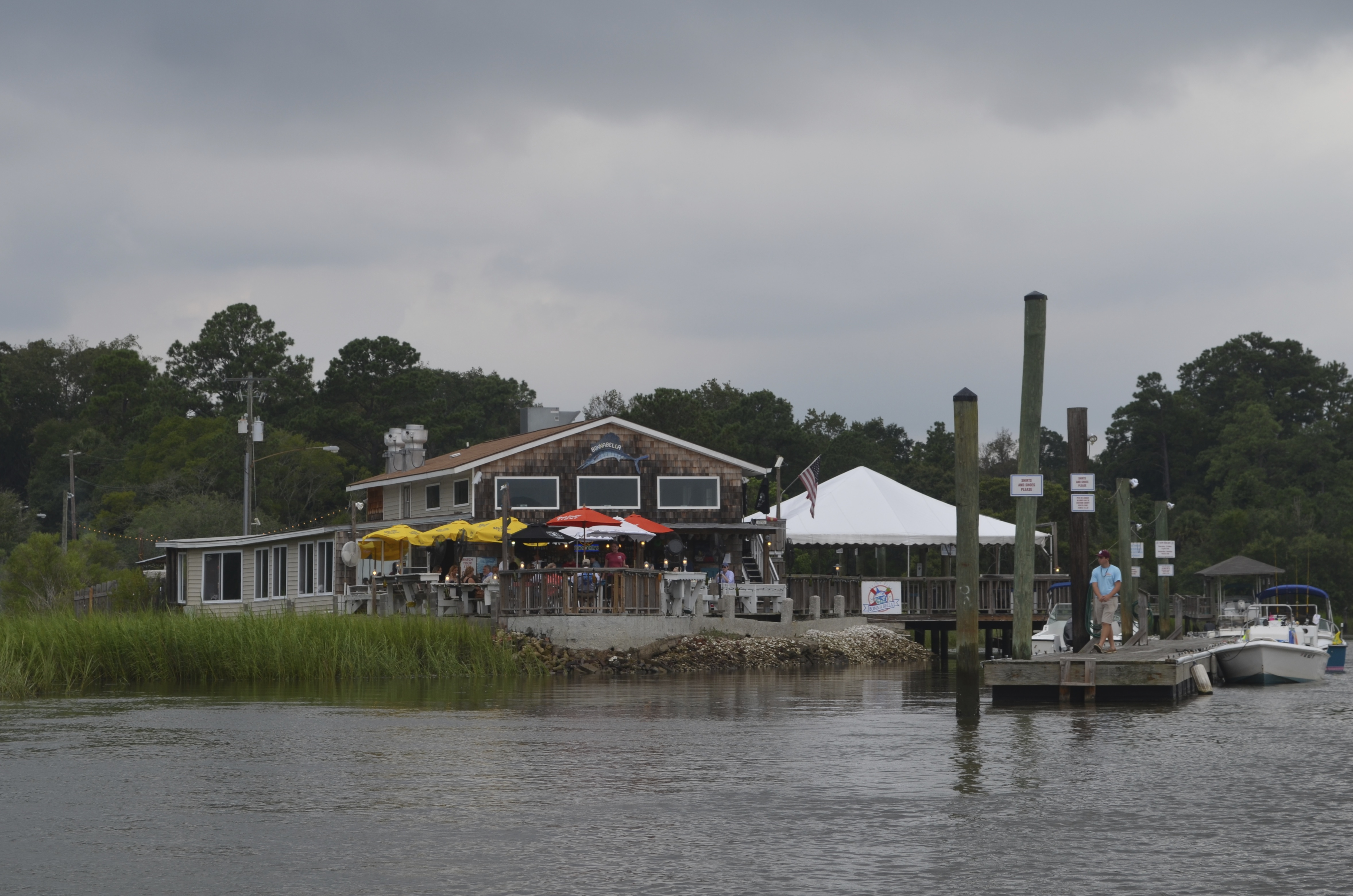 My next stop is just for atmosphere. This is where the local boaters from the islands around Savannah come to hang out. There was a band setting up for later. I guess there was a way to get there by car – we just boated in.