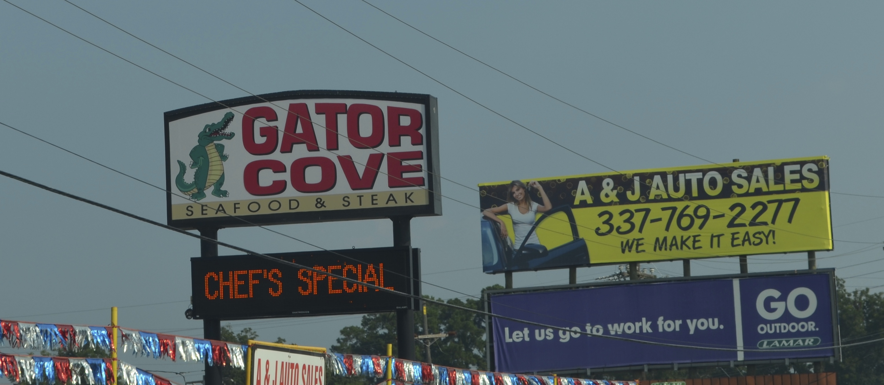 We still hadn’t tasted alligator. My son used to go to a place in the French Quarter, but I’m not sure if it was still there and I hadn’t looked for it. What do you do when you pass this sign outside of Lafayette, Louisiana?