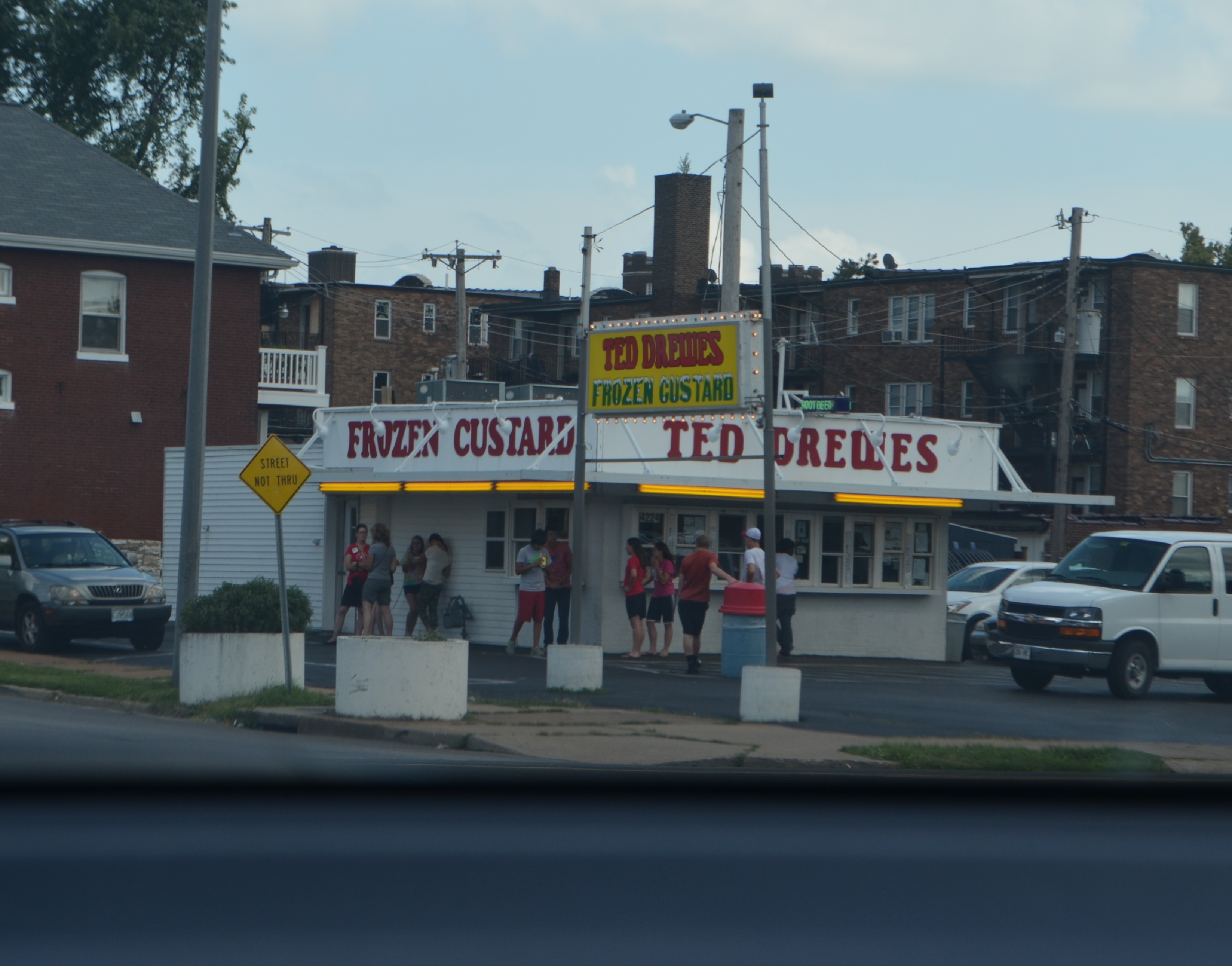 It’s hard for me to believe that I’d never spent much time in St. Louis since I’ve been by, through or around it many times, so I stopped for a quick day there, studying up on the history and geography of the city as I traveled.  First, you have to see the Arch, gateway to the West.  What a great structure, simple and pure in its message.  I’m so glad it’s surrounded by a park and all the museum, gift shop, ticketing, etc is located underground.   DSC_0220You approach the arch and look out to the Mississippi River.DSC_0192Entering the pods to go to the top of the arch is like being in a sci-fi movie…DSC_0199…but the view from the top is 30 miles in each direction.DSC_0205The arch is glorious in all lights and weather.DSC_0190The history of St. Louis is intertwined with the expansion of our country west with the Mississippi River an important part.DSC_0223From the old LaClere’s Landing, the neighborhoods expand westward, each a piece in the map of history.  The Hill had been recommended to us as a “must go to” place for Italian food.  This area developed around the Italian immigrants who mined the hills.DSC_0231  Today it is a wonderful neighborhood of extreme pride and an Italian restaurant on just about every block, sometimes on every corner of an intersection.  DSC_0234I tried to find out which ones were the best and they all got great reviews.  We settled on this one for a lunch of toasted ravioli, a local favorite.IMG_4978IMG_4979Yummy!  We left the neighborhood with its Bocce ClubDSC_0232and drove around the city with all its diversity.  There are the French homes around Lafayette SquareDSC_0240and brick homes around the city that matched my image of St. Louis from before I arrived.  Downtown is the wonderful old train station, now a hotel…DSC_0227and the beautiful areas around the University of St. Louis where this old standpipe at the Compton Hill Reservoir rose above us as we drove.DSC_0238Driving around, there were so many signs of the city that tell some of its story, like this one from the days when it was sometimes referred to as Mound City for the many ancient Native American mounds in the area,DSC_0260or this old bath house.  We know there were at least six of them.DSC_0253Or this Farmer’s Market sign.  That’s an OLD business…DSC_0274I can’t leave out the food and drink that are St. Louis traditions, starting with the beers…DSC_0263with the gargoyles on the building across from the iconic Anheiser Busch structures.DSC_0273 DSC_0272There are Ted Drewe’s famous custard shoppes with frozen custard called the “concrete” because you can turn it upside down and your spoon won’t fall out…DSC_0268and ooey gooey butter cakes.  This one was ranked #1 in St. Louis for the past six years.  I attest to its deliciousness.DSC_0270