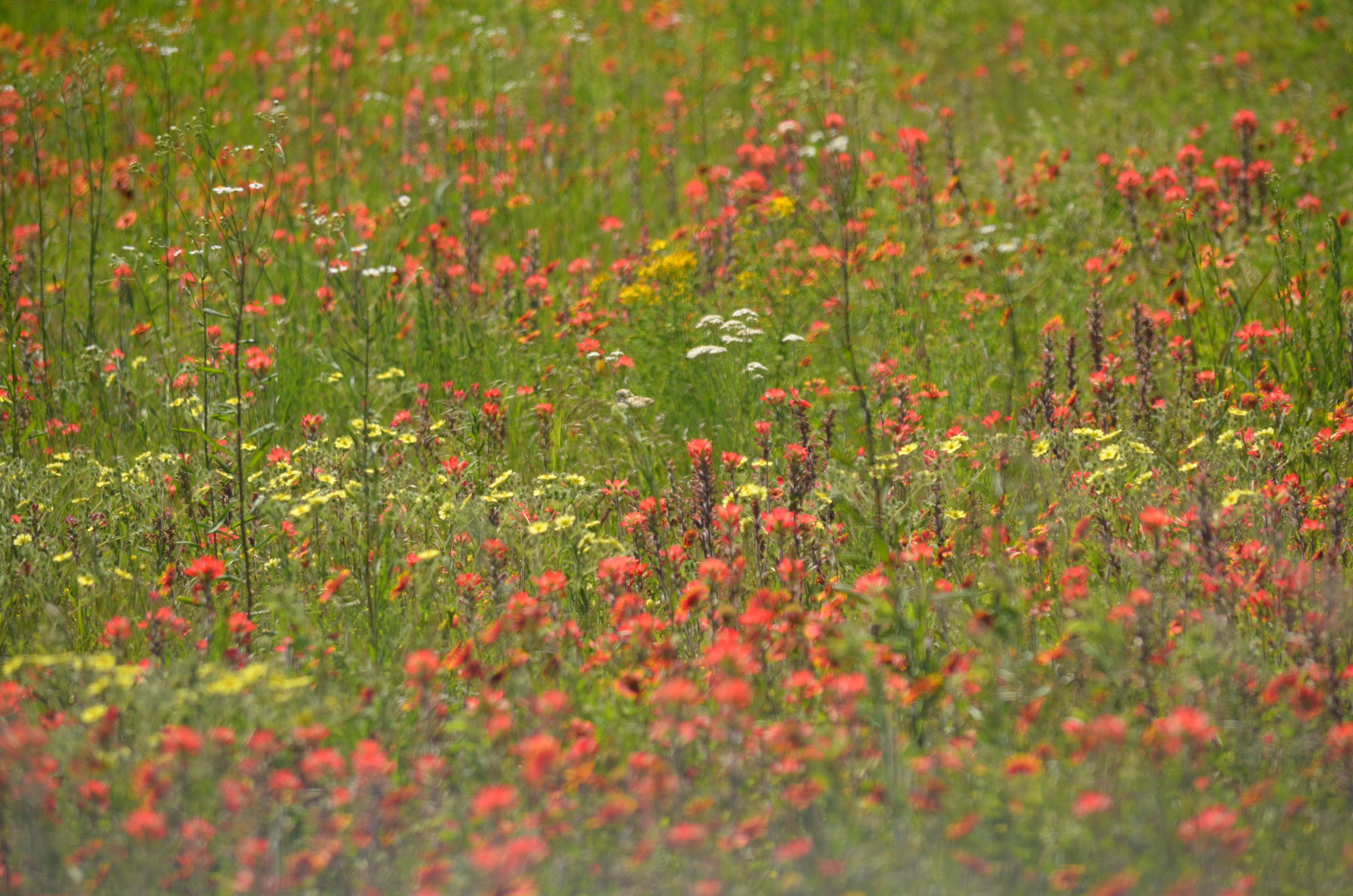 The first wildflowers I noticed along the highway were Indian Paintbrush, which started small12986938_10208256409264599_7286732991570888144_nand then grew taller and fuller until they blanketed hills along the way.DSC_0009As the weeks have gone by, other wildflowers have appeared. There are patches or whole fields of one color and then there are the mixed fields. Driving along, you spot the colors sometimes paired with native grasses as you whiz by.DSC_0102This week, I stopped on a beautiful bright breezy day because the flowers are so different up close. First there were large vistas of purples that appeared over the last week. DSC_0019Look how pretty these flowers are up close. Nothing like you would think from the road.DSC_0023Then there were white flowers, some standing tall above the other plants, waving in the wind.DSC_0065Up close, they are little bouquets.DSC_0033Or these other small flowers for a doll size bouquet.DSC_0060The yellows are in bloom, swaying in the background.DSC_0087These are probably something that irritates those with allergies, but they are so pretty.DSC_0092And smaller yellow babies are bright along the ground.DSC_0101More tiny flowers for the doll tea party…DSC_0074Or flowers as bright as the sun that day.DSC_0095A random flower to accent the field.DSC_0100And more fields of orangey red blazed beside the road.DSC_0070And more and more orangeDSC_0069Indian paintbrush…DSC_0006mixed with Indian Blanket, Oklahoma’s state wildflower.DSC_0045As I was getting in my car on one of the gravel or dirt roads where I pulled off to wade in the flowers, a pickup stopped and a scruffy resident smiled a somewhat toothless grin and asked if I was stuck. I laughed and said I had stopped to see the wildflowers. He laughed back, waved and drove away. I can’t imagine that people who live in the middle of all this color don’t love it as much as I do, but maybe some take it for granted.