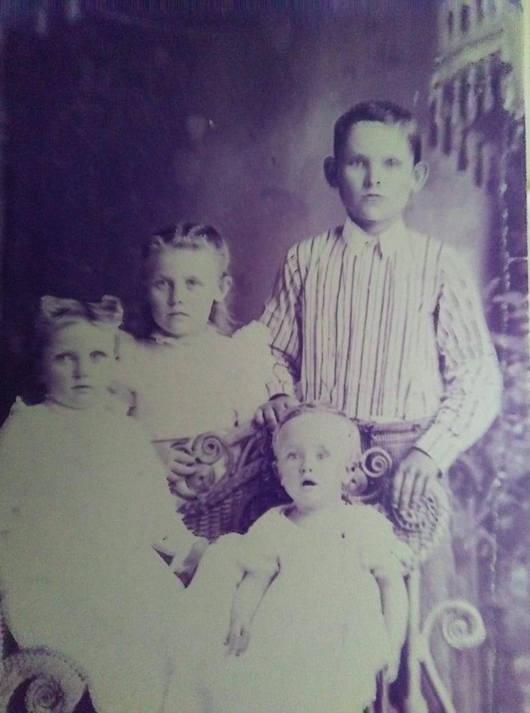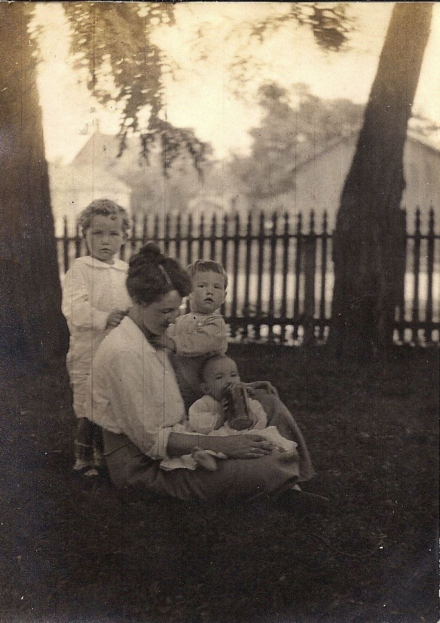I know my great-grandparents began to purchase more property around town. My grandfather, Ben, died at 50, leaving my grandmother with three children during the Depression. My mother spent a lot of time with her grandmother, who was a widow by this time since E.Z. died in 1920. Here is a picture of my mother and her brothers with Hattie, probably around the time Ben died.