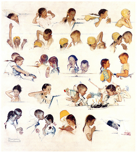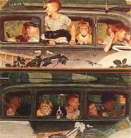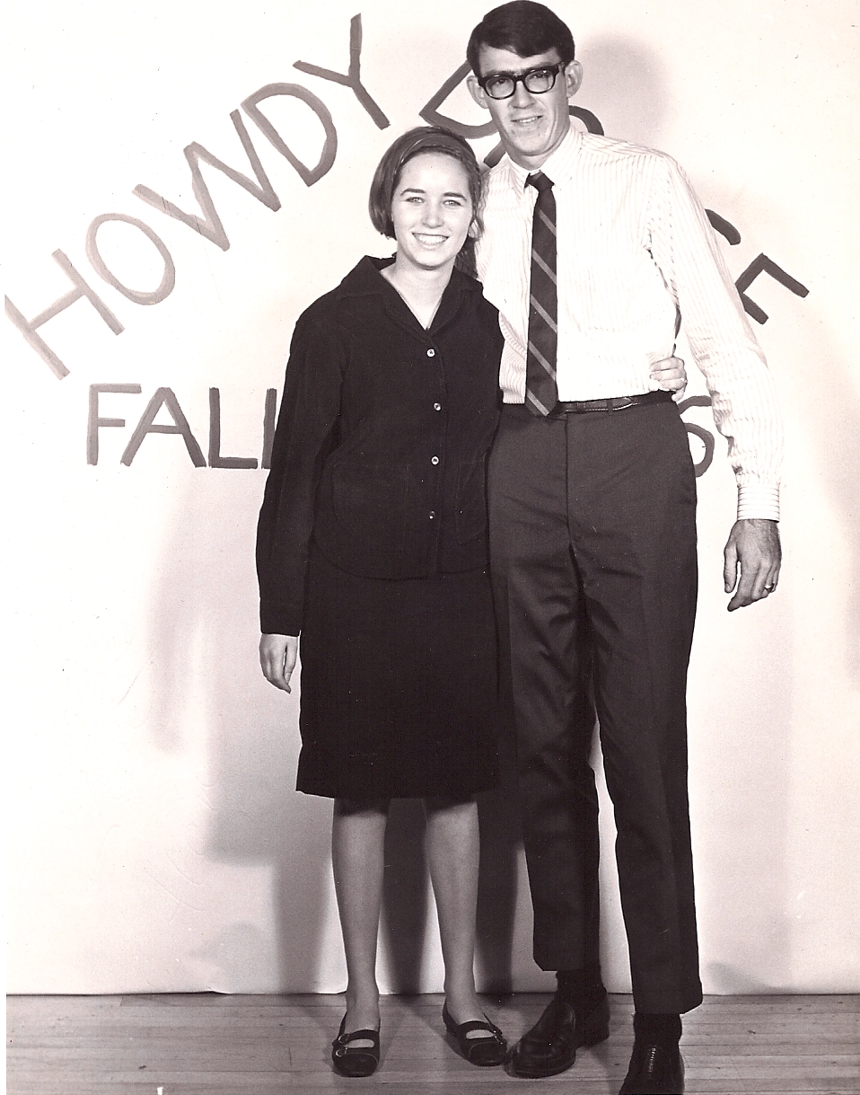 I remember a summer when I was about 13 I hung around in very short shorts and one of my dad’s old shirts. Neat. By the time I graduated, skirts were a bit shorter, hair was puffier since we now had rollers and hairspray, and we were preppier. I’ve lived through the fifties, sixties, seventies and all the looks ever since. I can’t find a perfect illustration of junior high, but here’s one from college with several looks of 1964…babushka on my hair, round collar blouse, cutoffs, the purse of the season and thongs (flip-flops now). Carefully coordinated. What goes around, comes back…