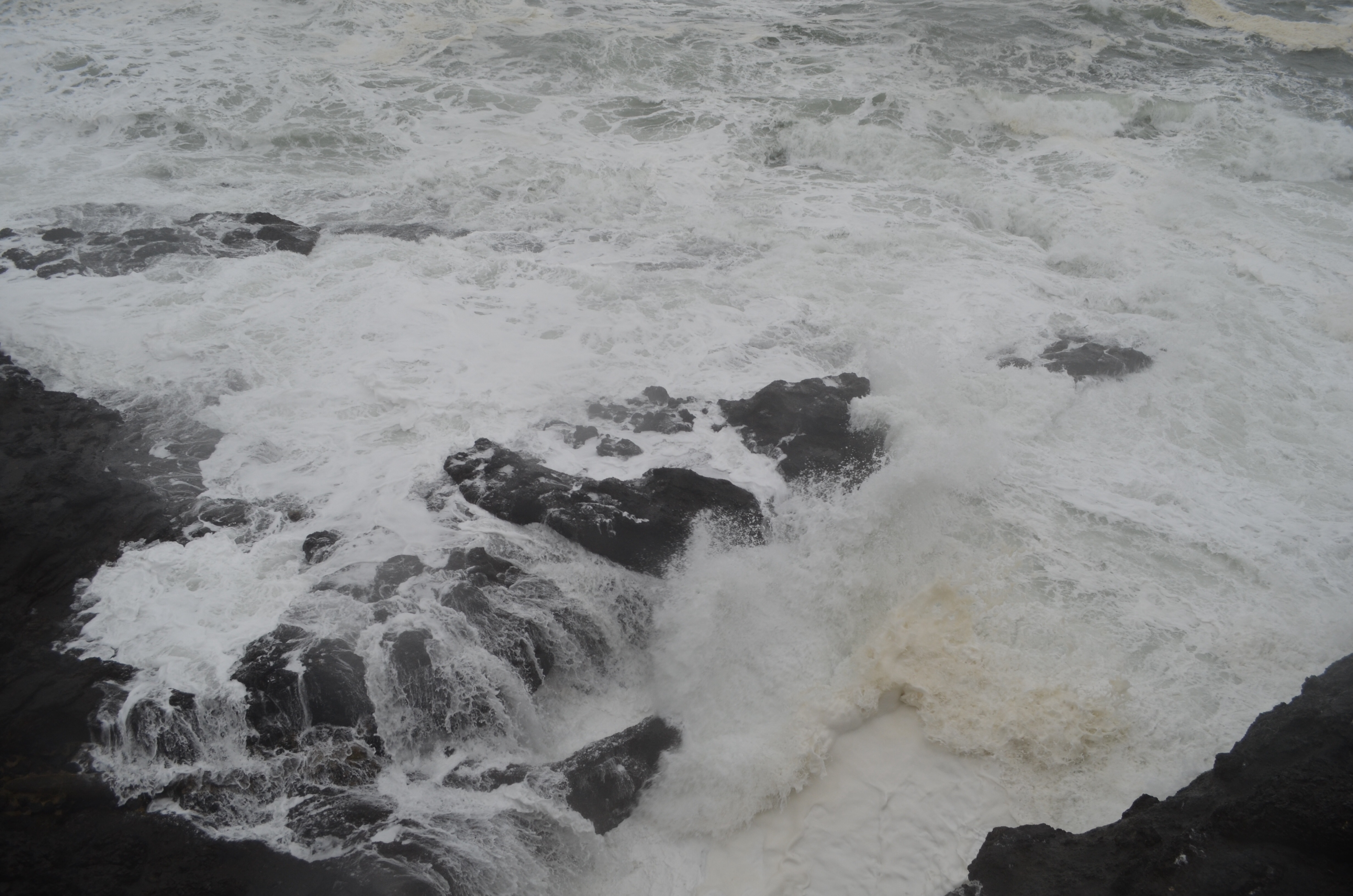 Sometimes we humans get to witness moments in nature that we know we will never see again. I was taking pictures after the recent storms in Oregon, watching the thick sea foam washing over the beach when something caught my eye, an unusual movement through my viewer. I had zoomed in and still couldn’t recognize exactly what I was seeing. You may see it around the center of this shot…