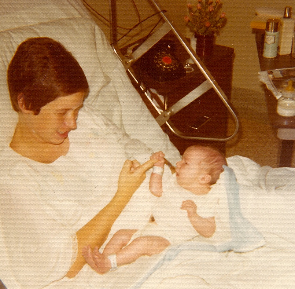 I played with dolls a lot when I was little, was the oldest child, did a little bit of babysitting…but wasn’t thinking about being a mother at all. I married when I was barely 21 and wanted to live happily ever after. The craziness of birth control in the 1960s was supposed to be sure fire and make it so I didn’t have to think about it. I went on birth control pills, like we all did, and then found that the high strength of the ones they used then was making me gain weight and have migraines. Off of those and on to something else…and I got pregnant on that one. Hmmm. I’d only been married nine months and we’d even gotten a dog to keep us from thinking about having kids. Farthest thing from our minds.