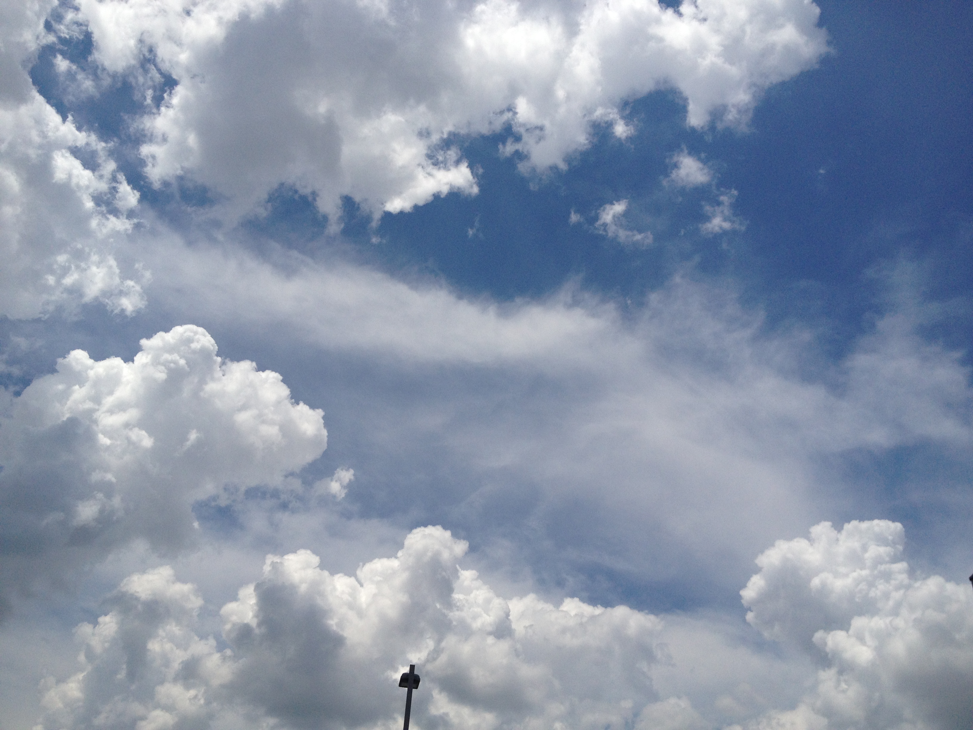 As I drove further, I saw designs all around me, every direction. The fact is that there really didn’t seem to be any real clouds in the sky, only the fluffy condensation from the contrails. There were more and more. When I thought the sky was saturated, I noticed tiny lines forming new trails, which puffed out into the mass I was seeing.