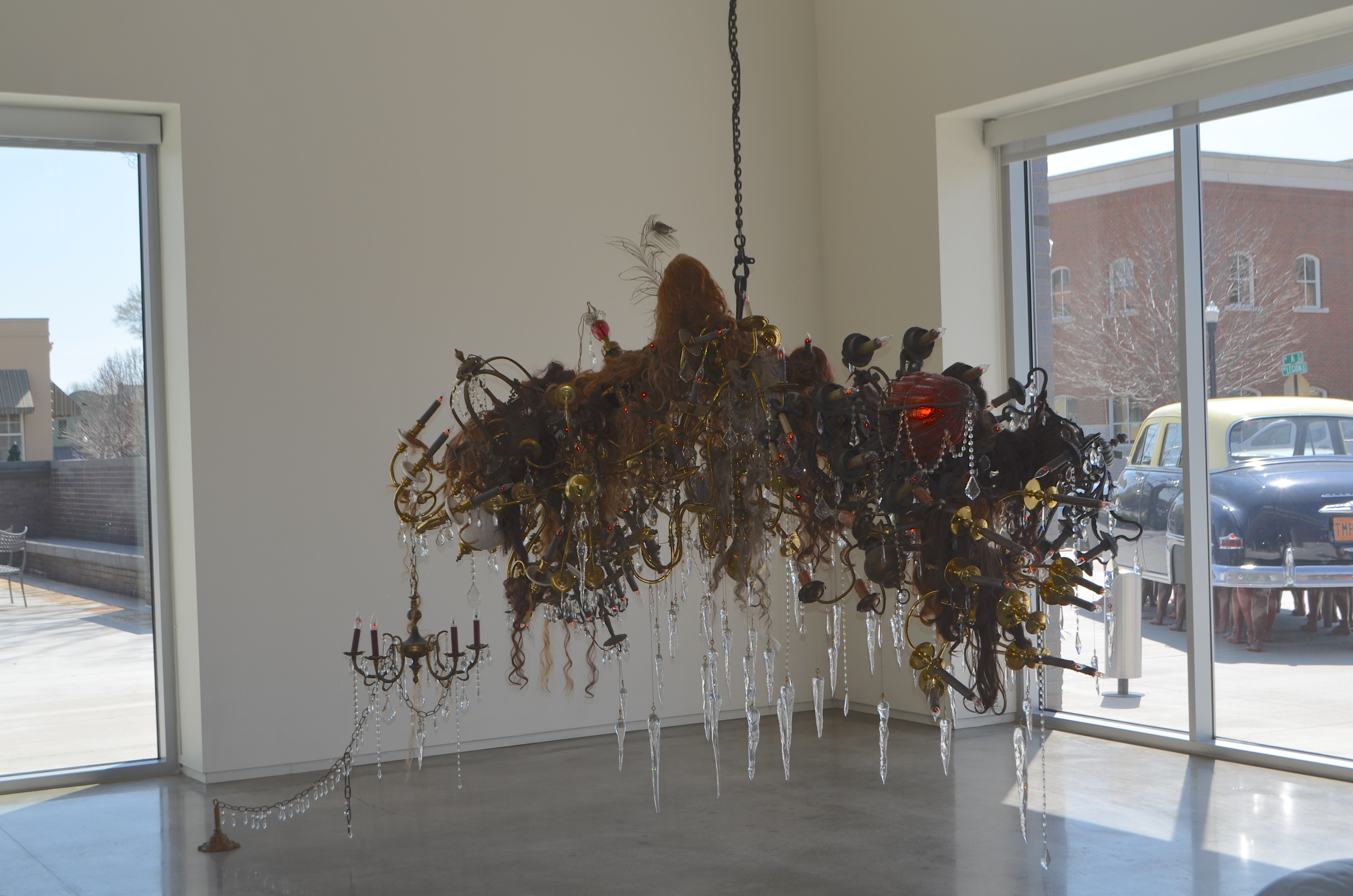 DSC_0049There was an incredibly intricate drawing of a haunted dollhouse with details to keep you looking for more and more weird things while you marveled at the skill of the artist.  There were beautiful beaded items, and paintings and other sculptures scattered around the lobby and beyond. They even give tours each day.