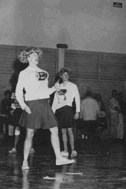 Edison Week really hasn’t changed much.  We had a gridiron show and I found pictures of our version of guy cheerleaders, 50 years ago.  These were the football players and the other jocks.  The guys have gotten more creative through the years with intricate routines that are SO teen age boy in their enthusiasm and silliness.  I have film of my son’s guy cheerleading group.