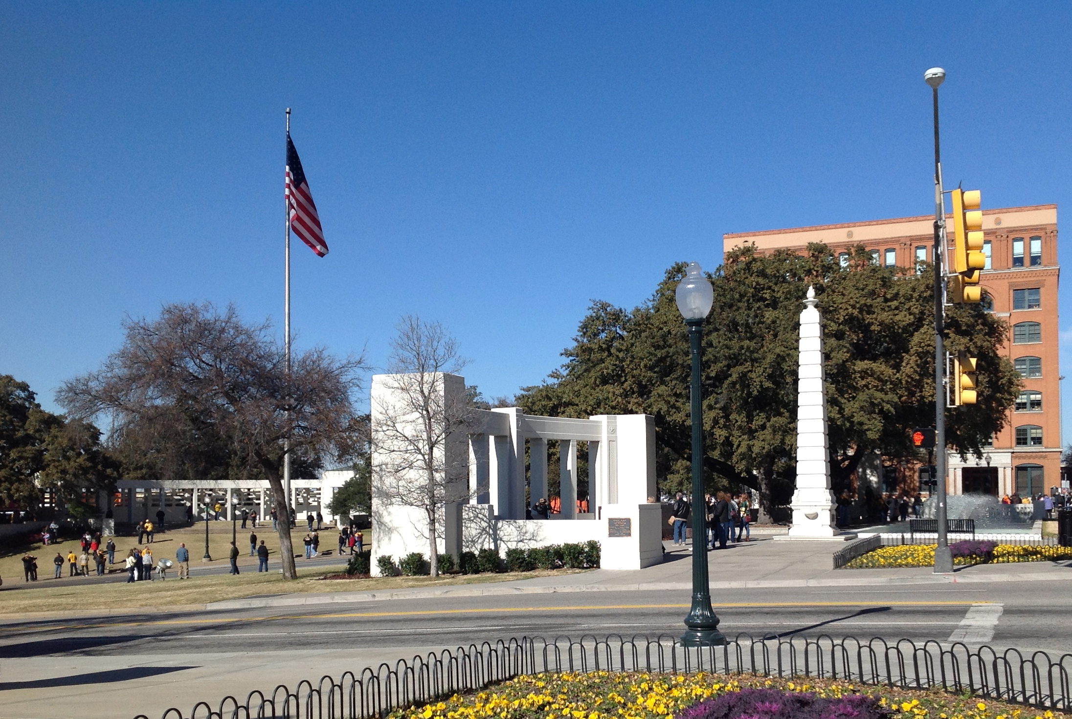Although I knew there was now a museum, I hadn’t rushed to visit, so I’m still somewhat surprised that I felt the urge to go this weekend with friends. We were in town for a football bowl game and were filling our afternoon, navigating the overlapping amusement park of freeways in and around Dallas, a city of glass and flash. The end of the holiday season, the first weekend of the new year, and the lines were forming just to get tickets for the timed entry. Tickets in hand, we visited the plaza while waiting. My two friends were in junior high or high school in 1963, so we had different memories to share, because you always have to talk about where you were when you heard the news. You have to.